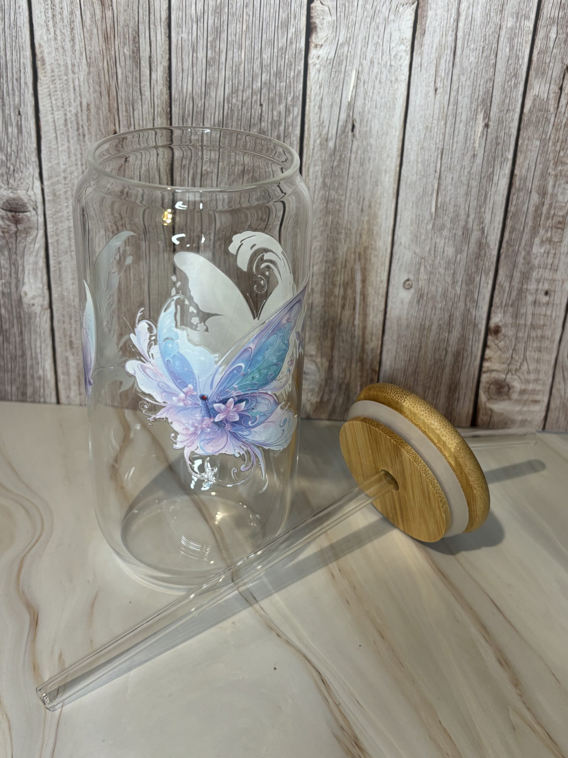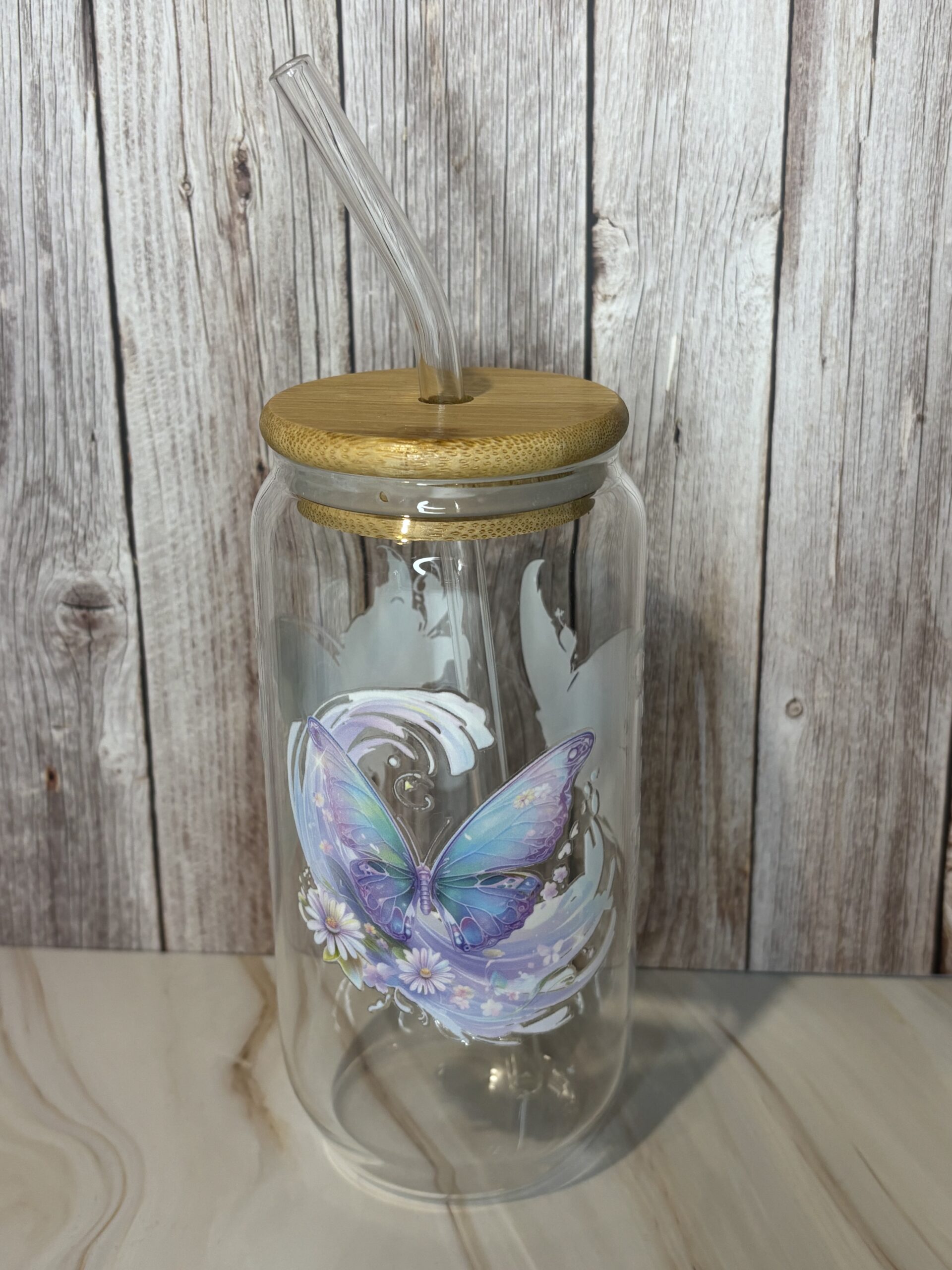 Glazen drinkbeker- sticker- vlinder