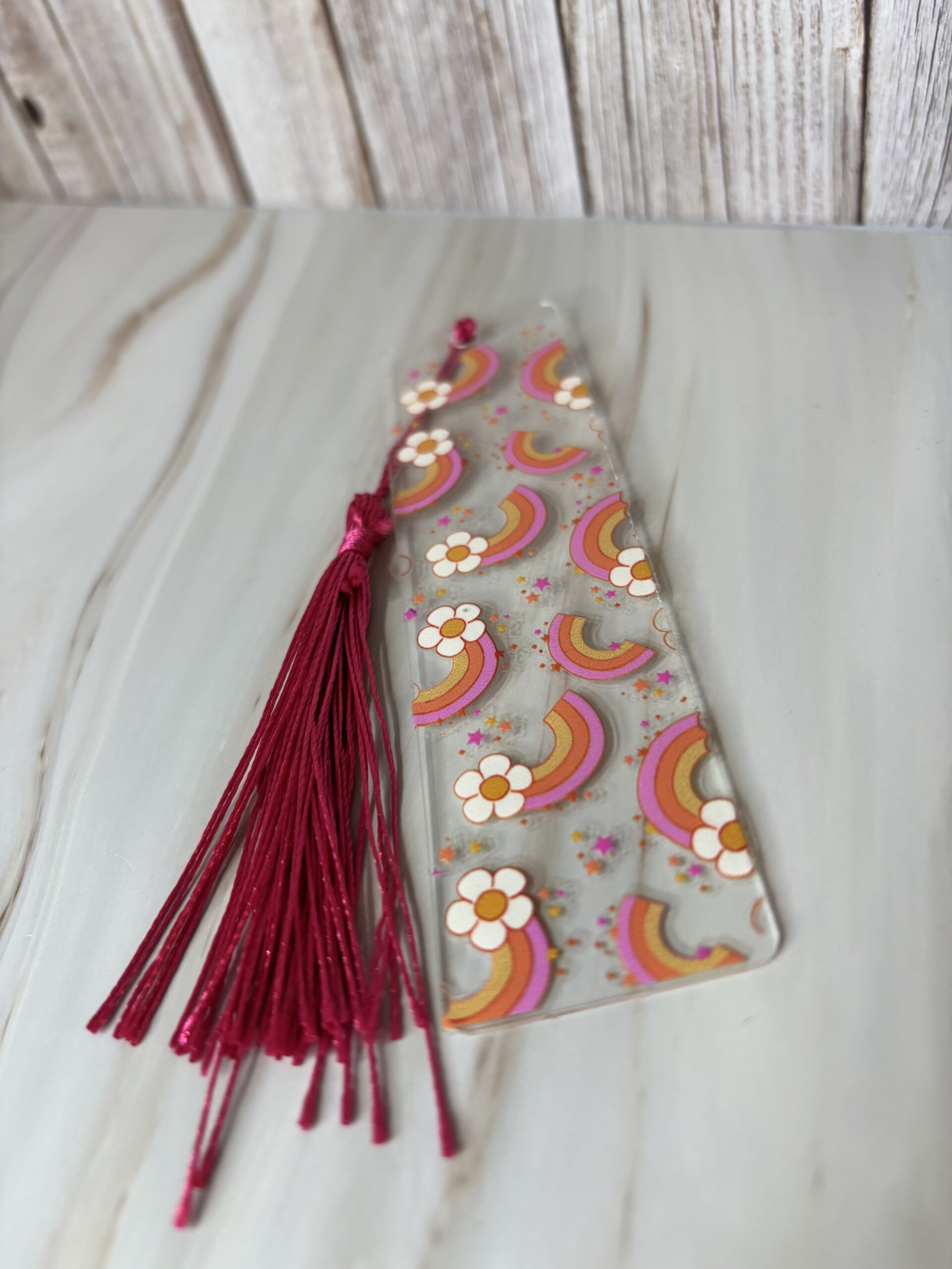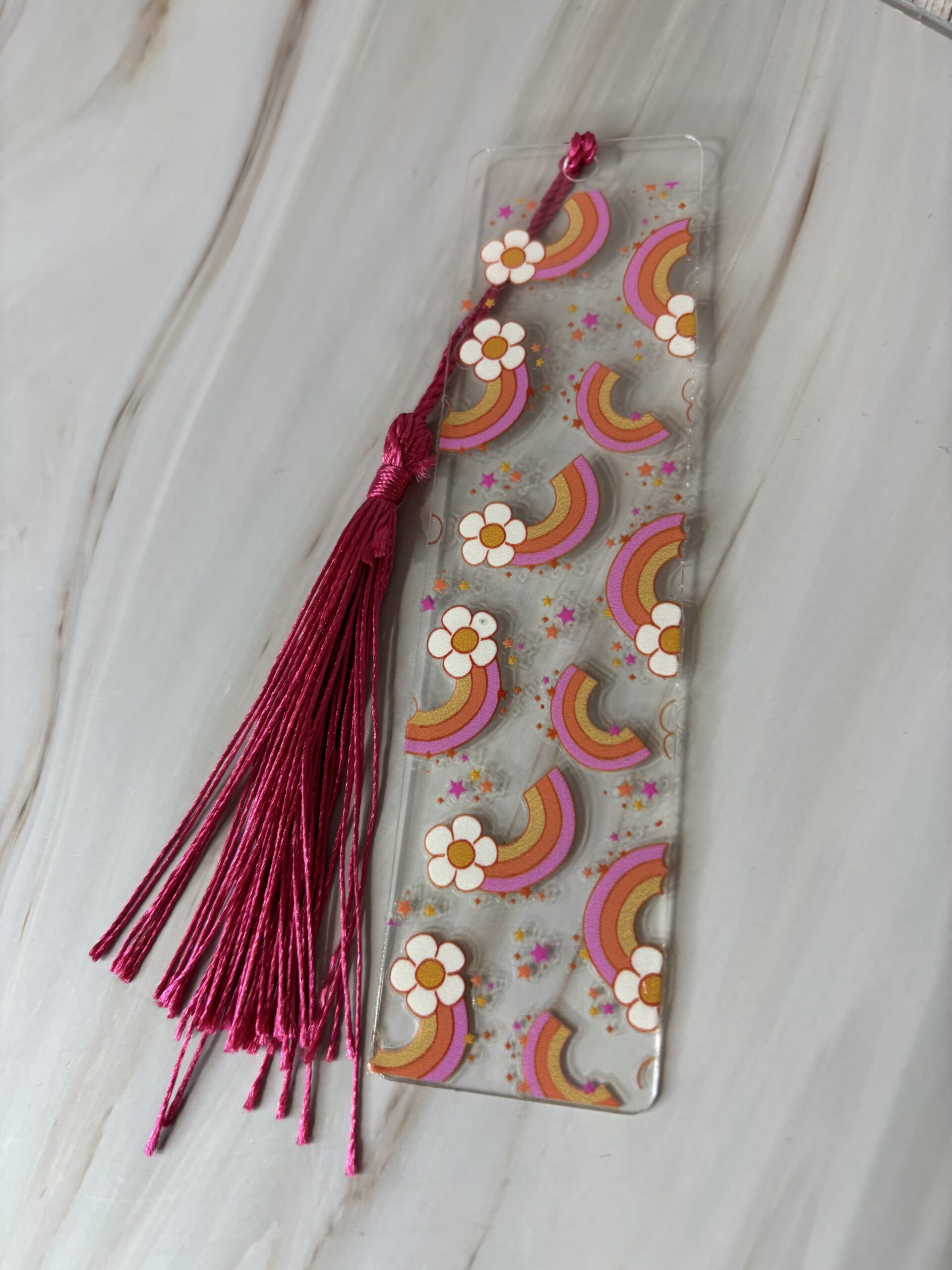 Boekenlegger regenboog bloem met kwastje.