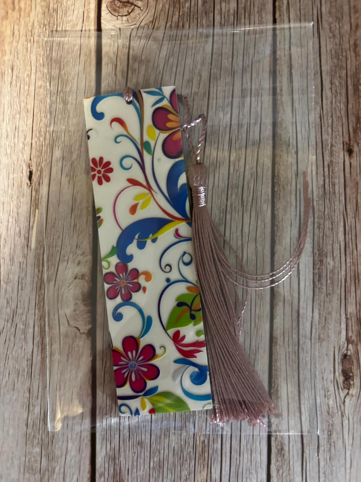 Bladwijzer 2,6cm x 9,3cm met kwastje. Dikte 3mm