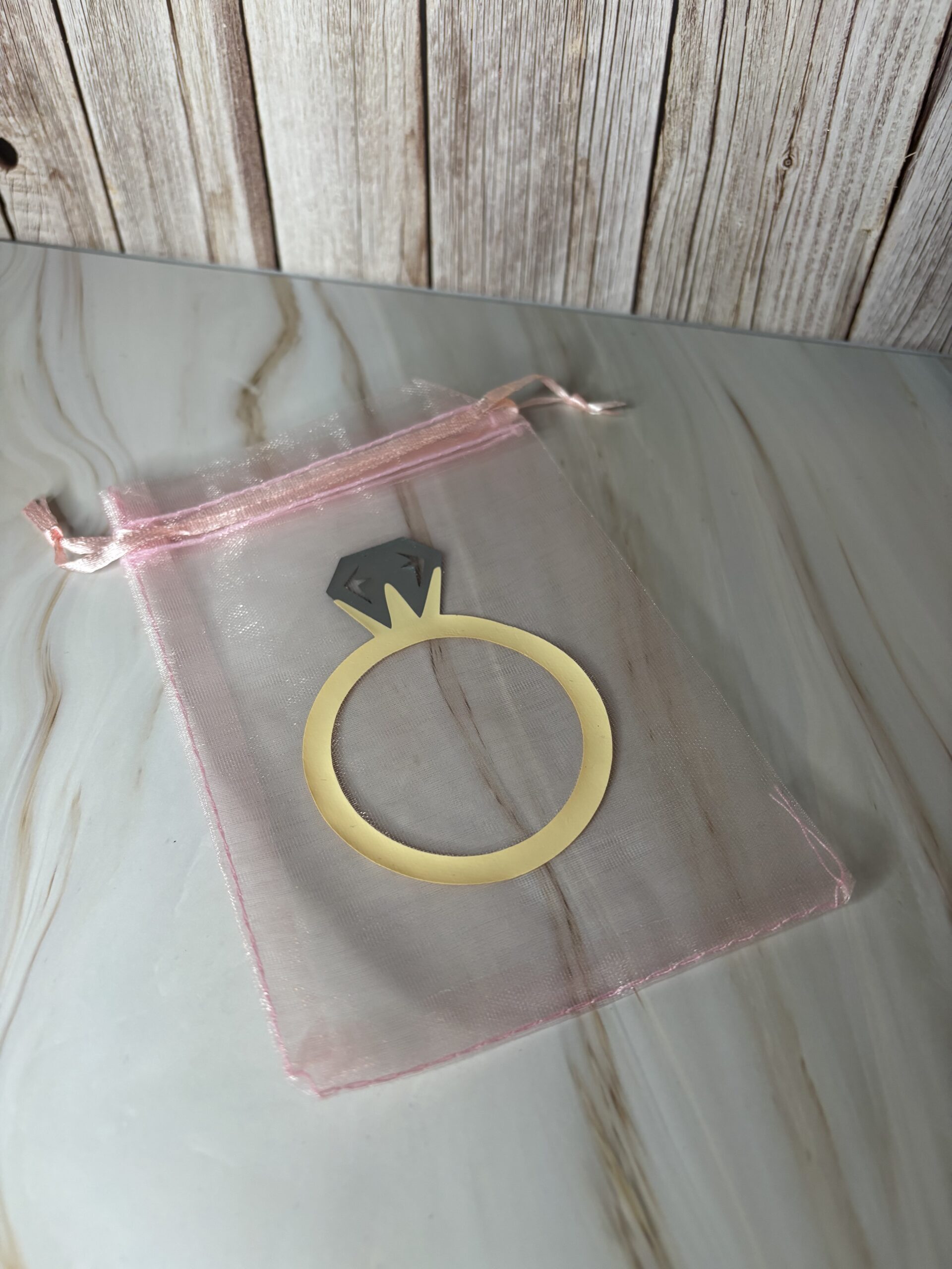 Roos organza zakje, bedrukt met iron-on.