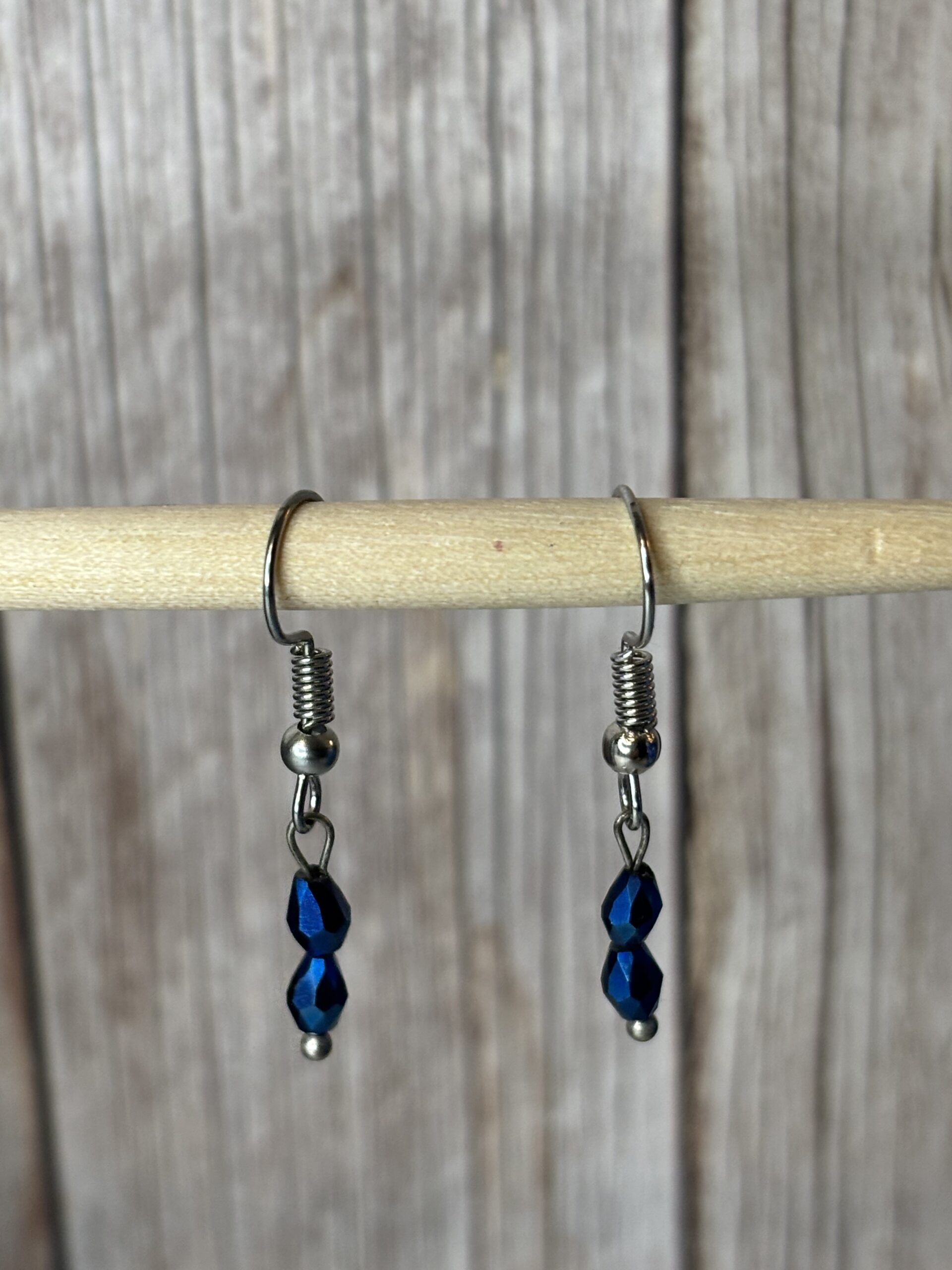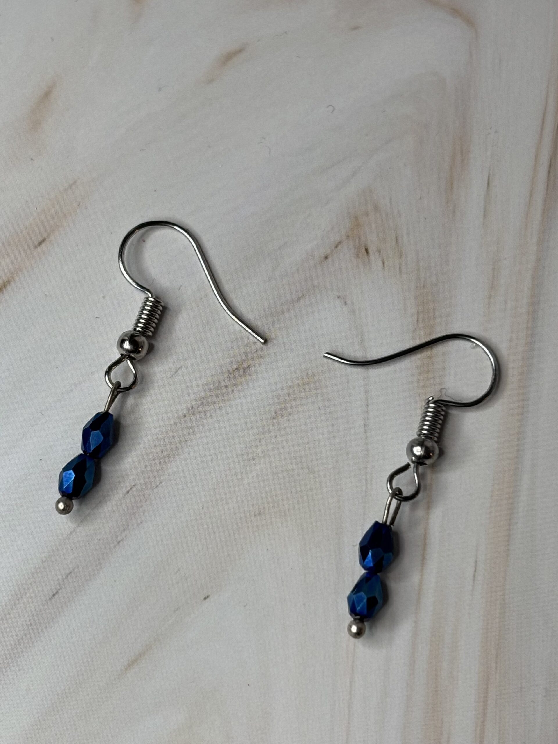 Oorhaakjes zilverkleurig stainless steel met blauwe facetkralen
