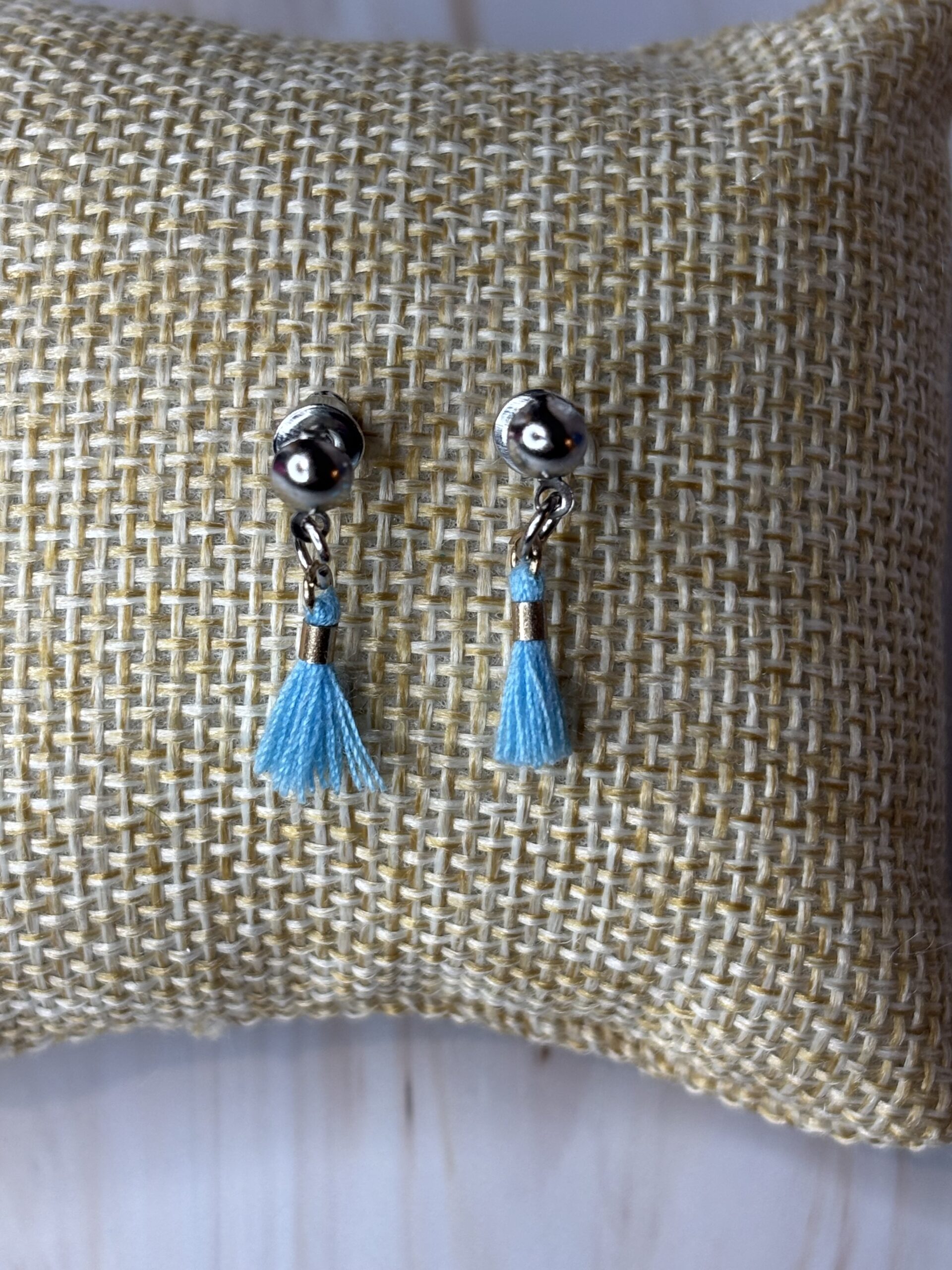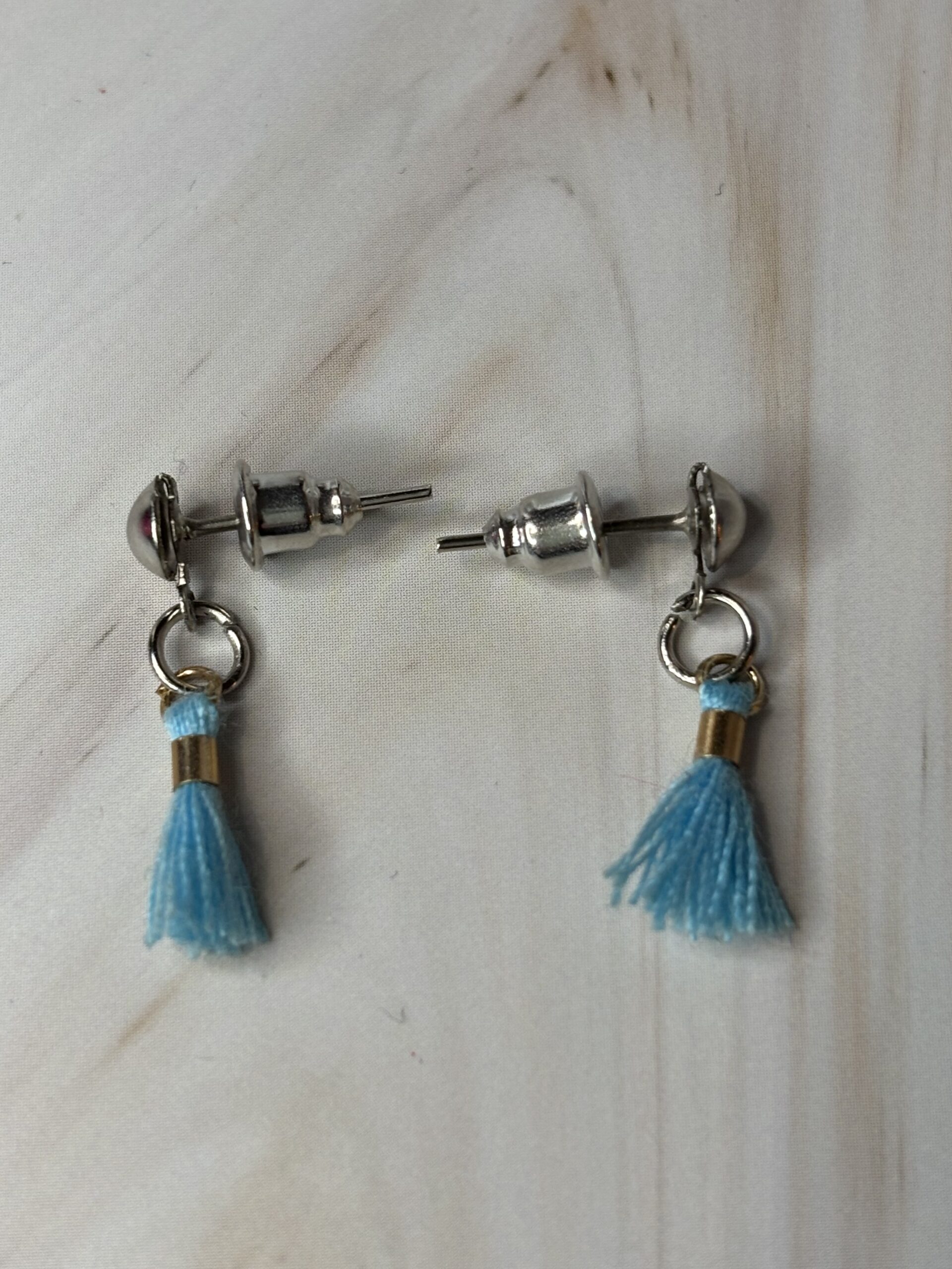 Oorstekers zilverkleurig stainless steel met lichtblauw kwastje.
