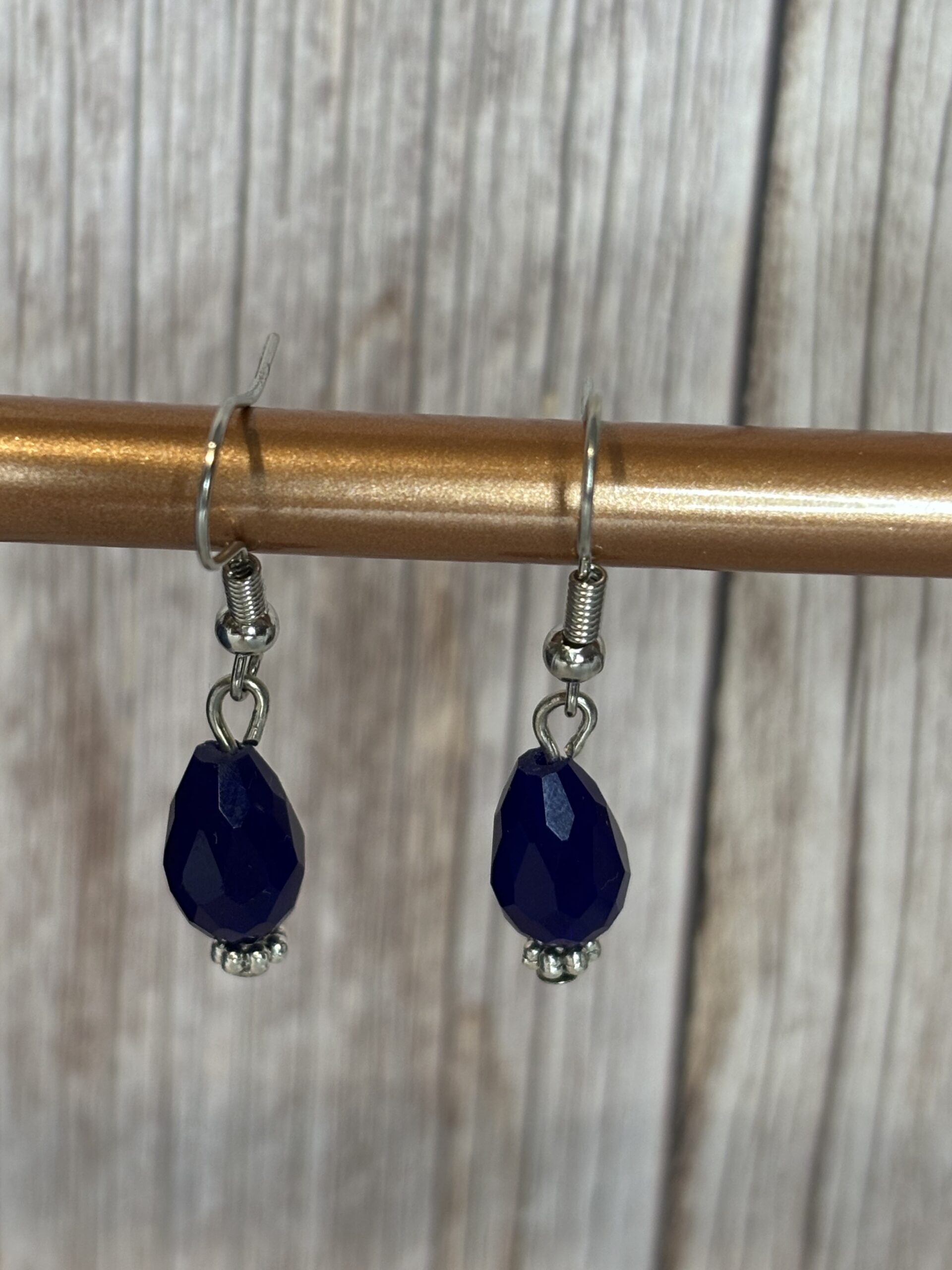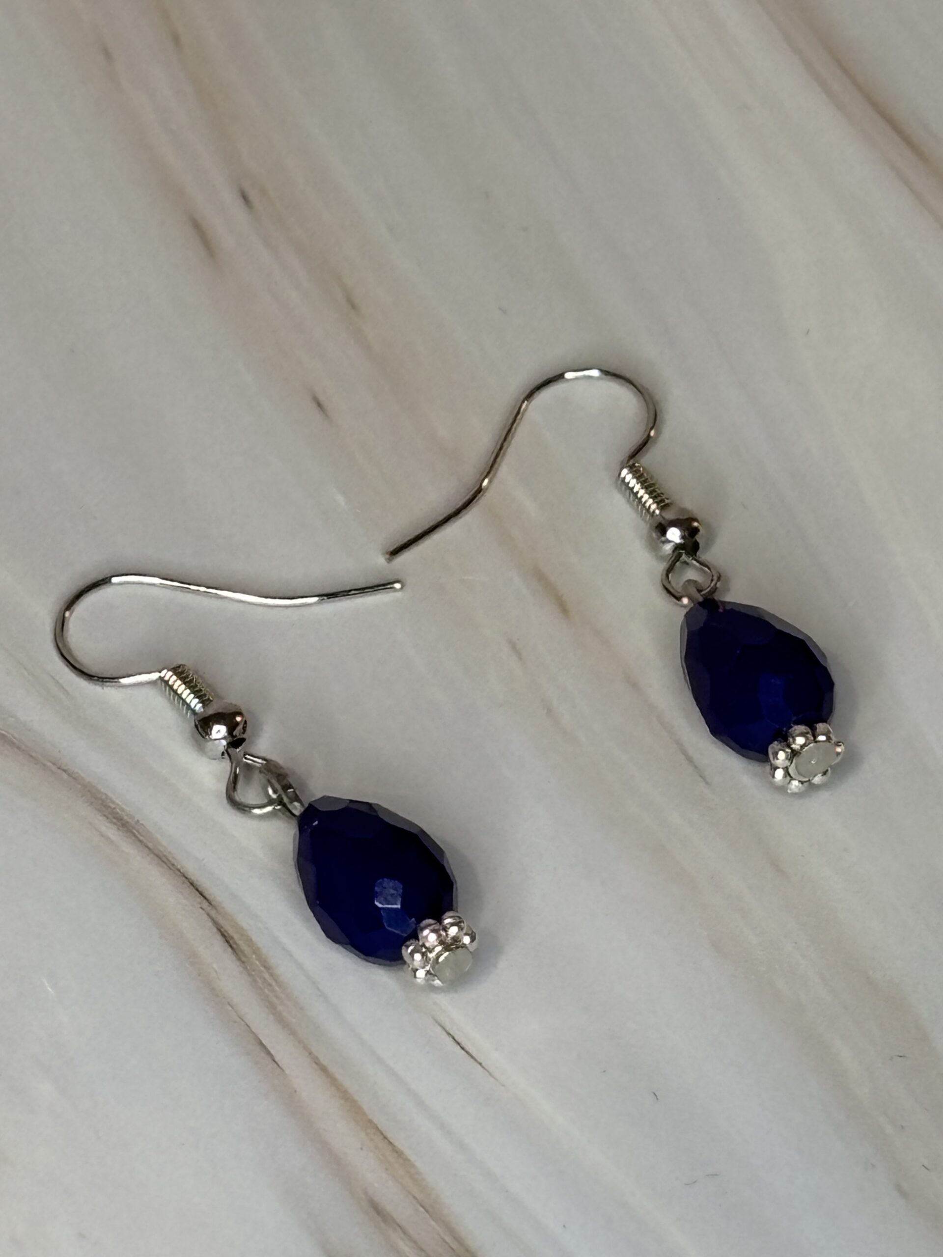 Oorhaakjes antiek zilver stainless steel met blauwe druppel parel.