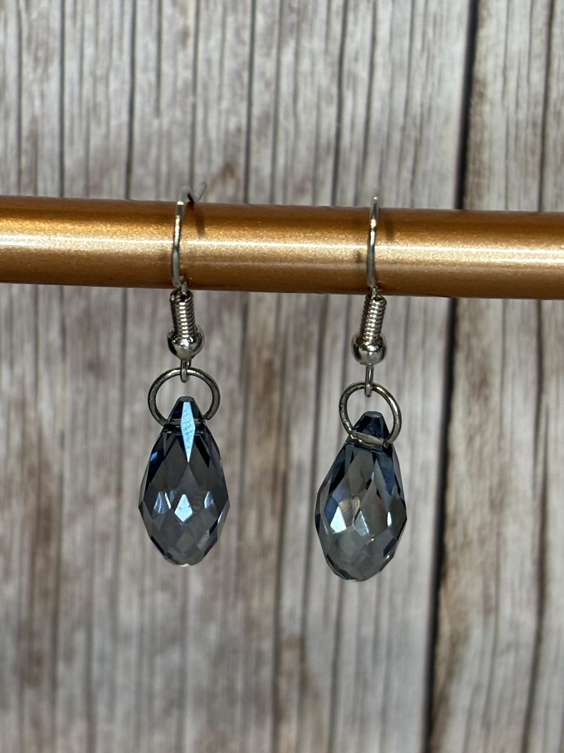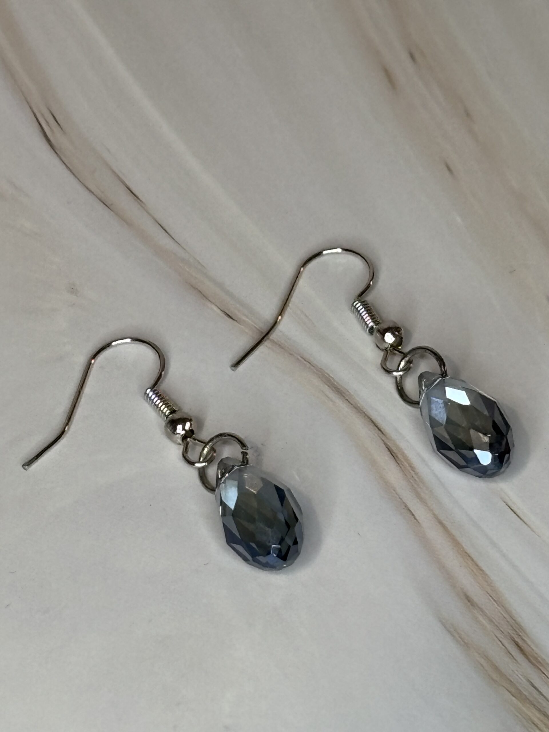 Oorhaakjes antiek zilver stainless steel met blauw doorschijnende druppel parel.