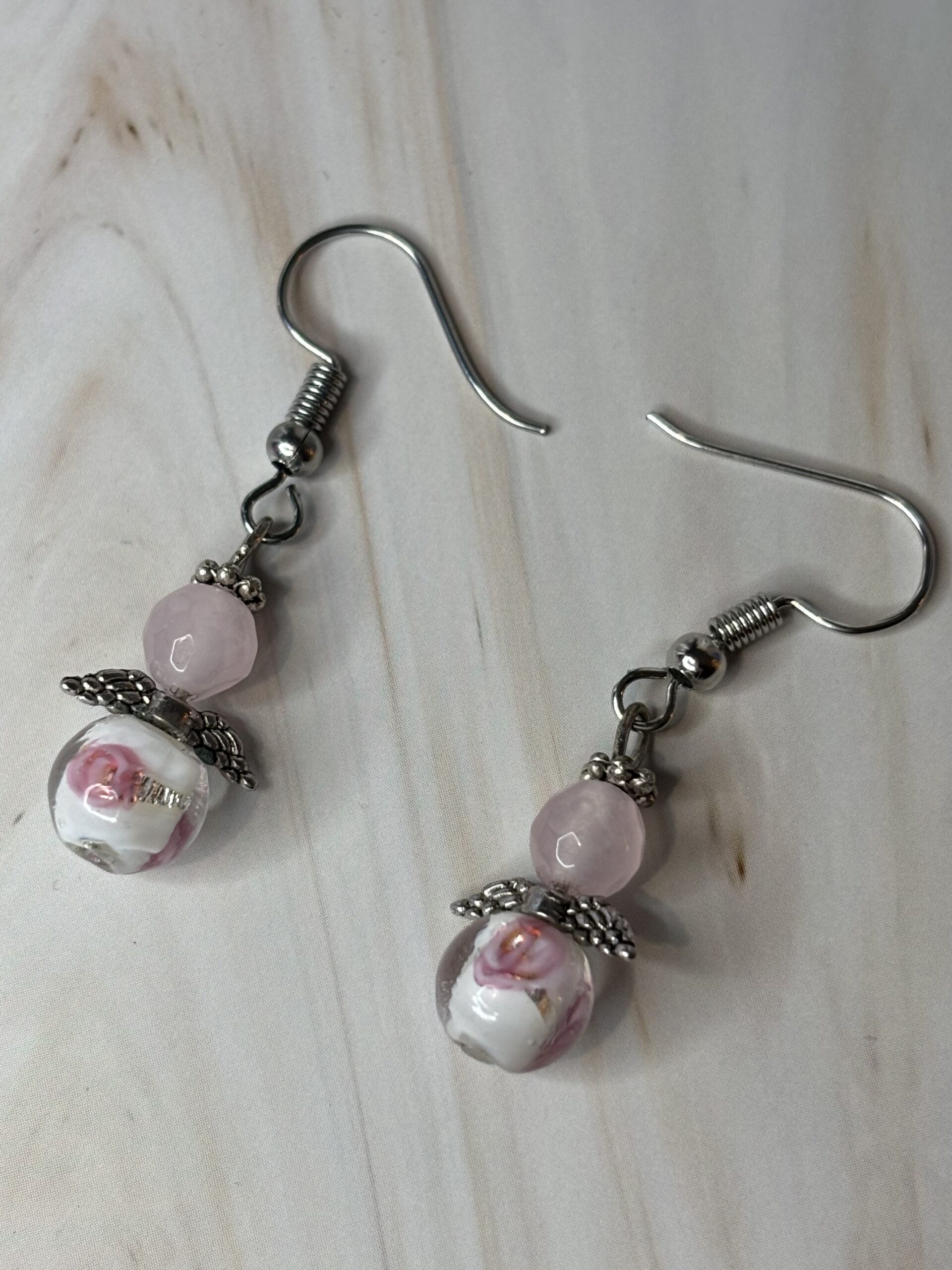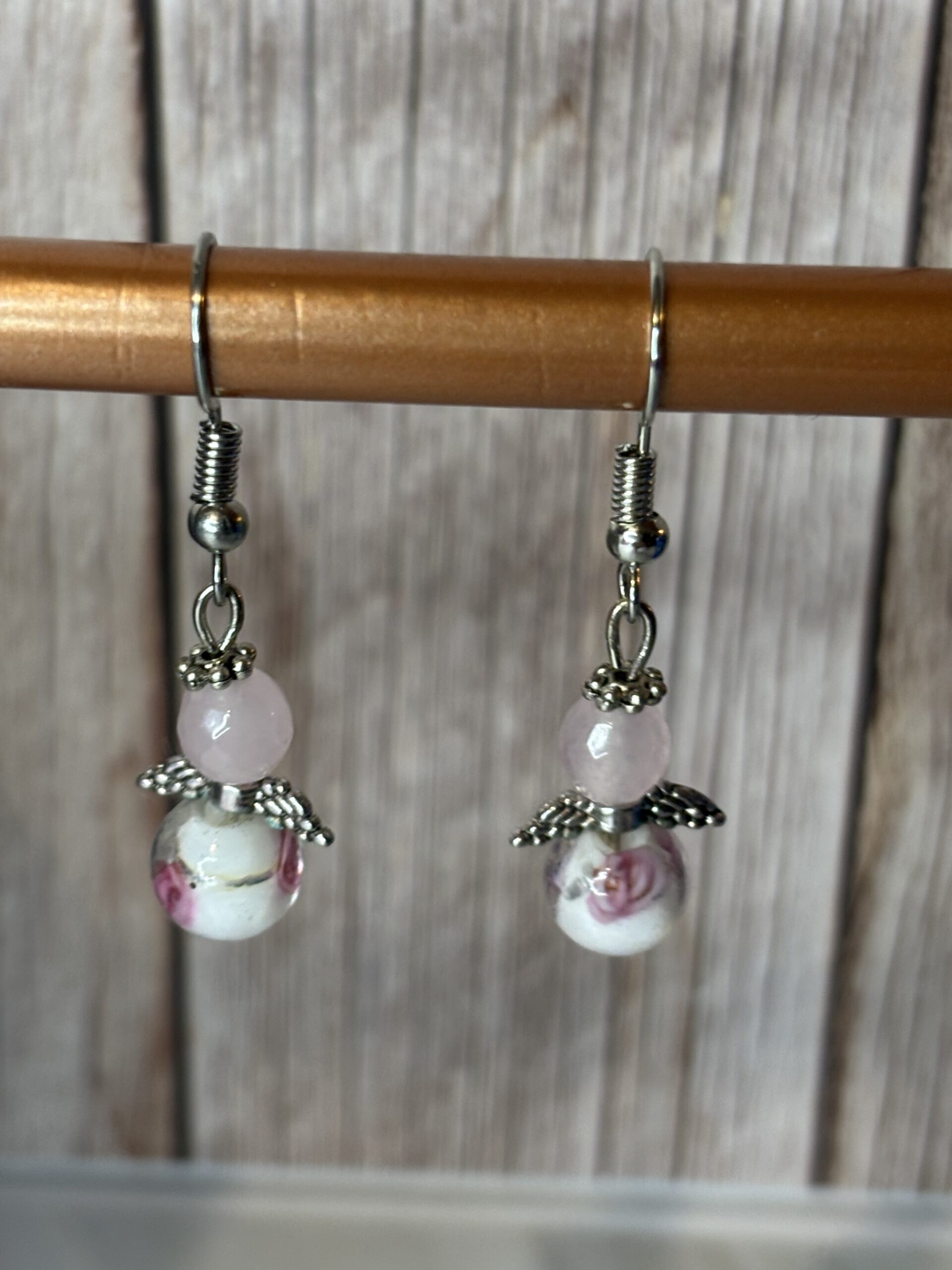Ooorhaakjes antiek zilver stainless steel met engeltje gevormd met parels.