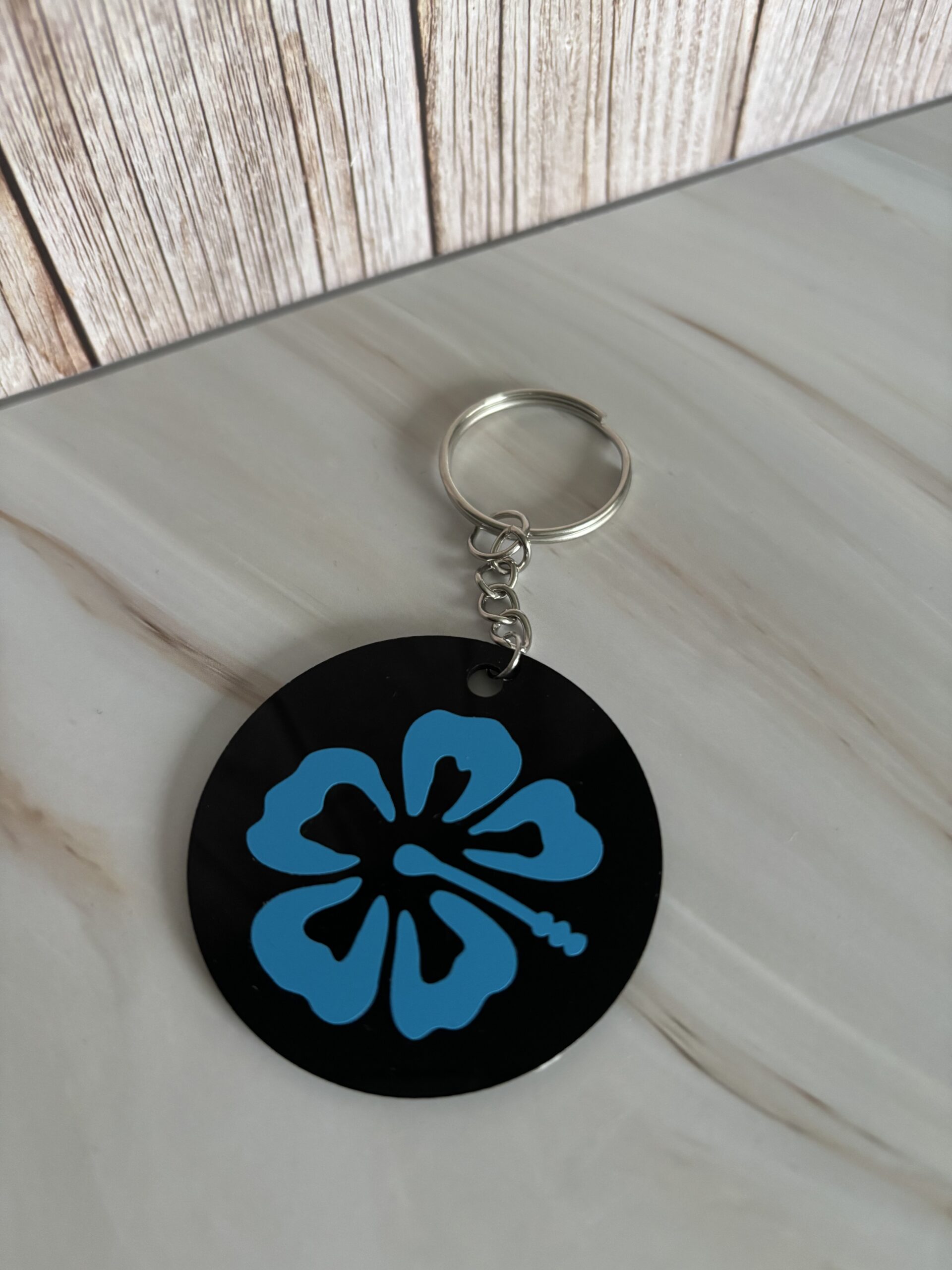 Sleutelhanger zwart acrylplaatje met vinyl bedrukt.