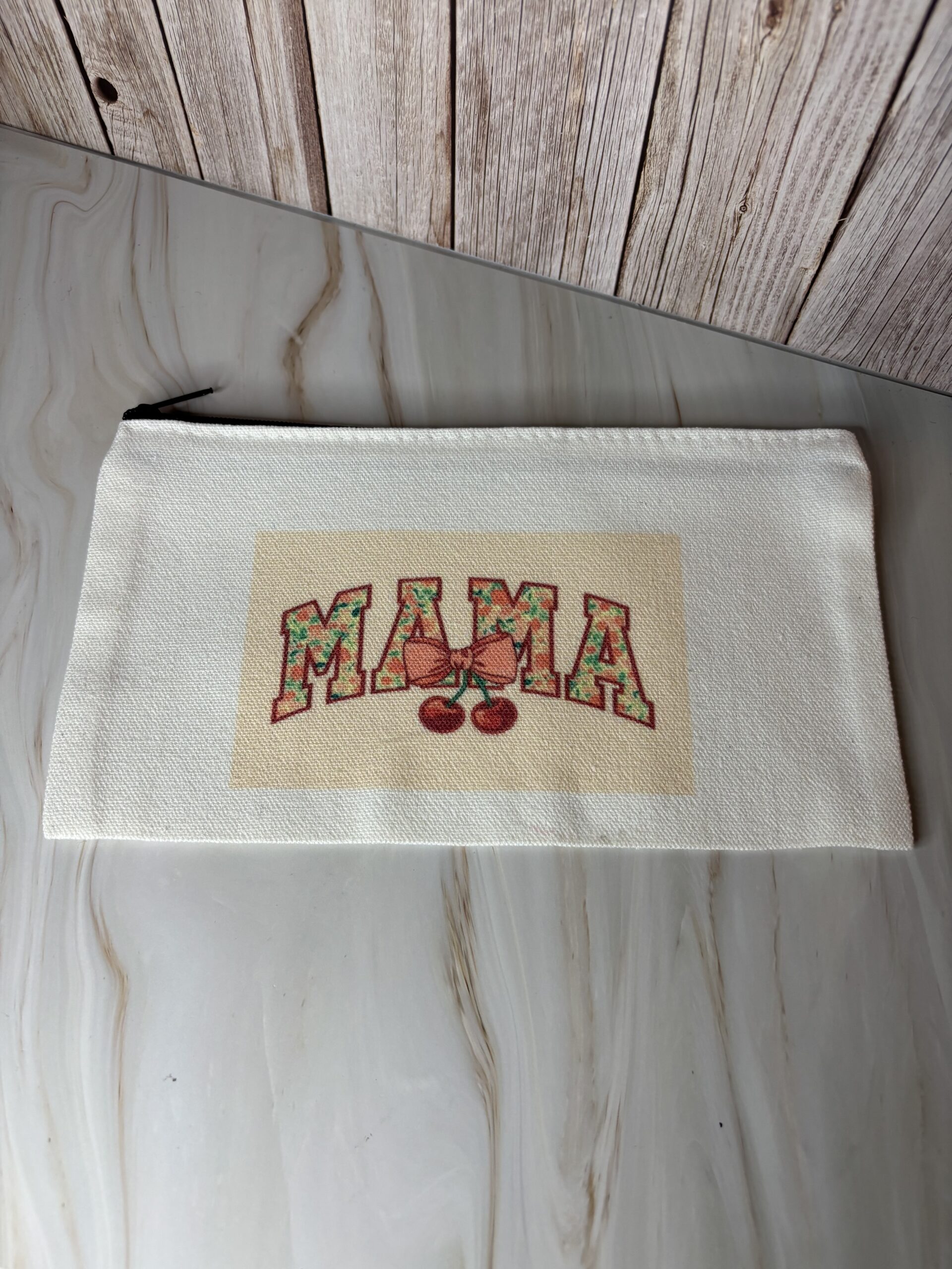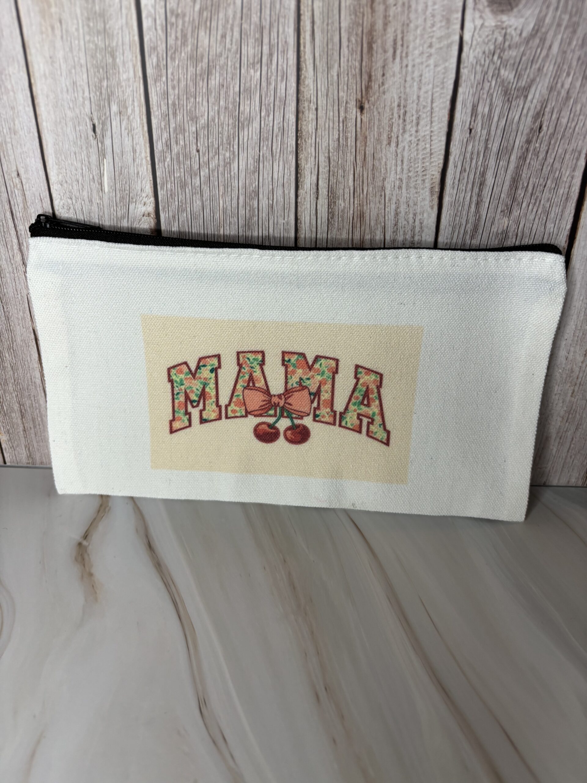 Stoffen gebroken wit toilettas met zwarte rits, sublimatie bedrukking