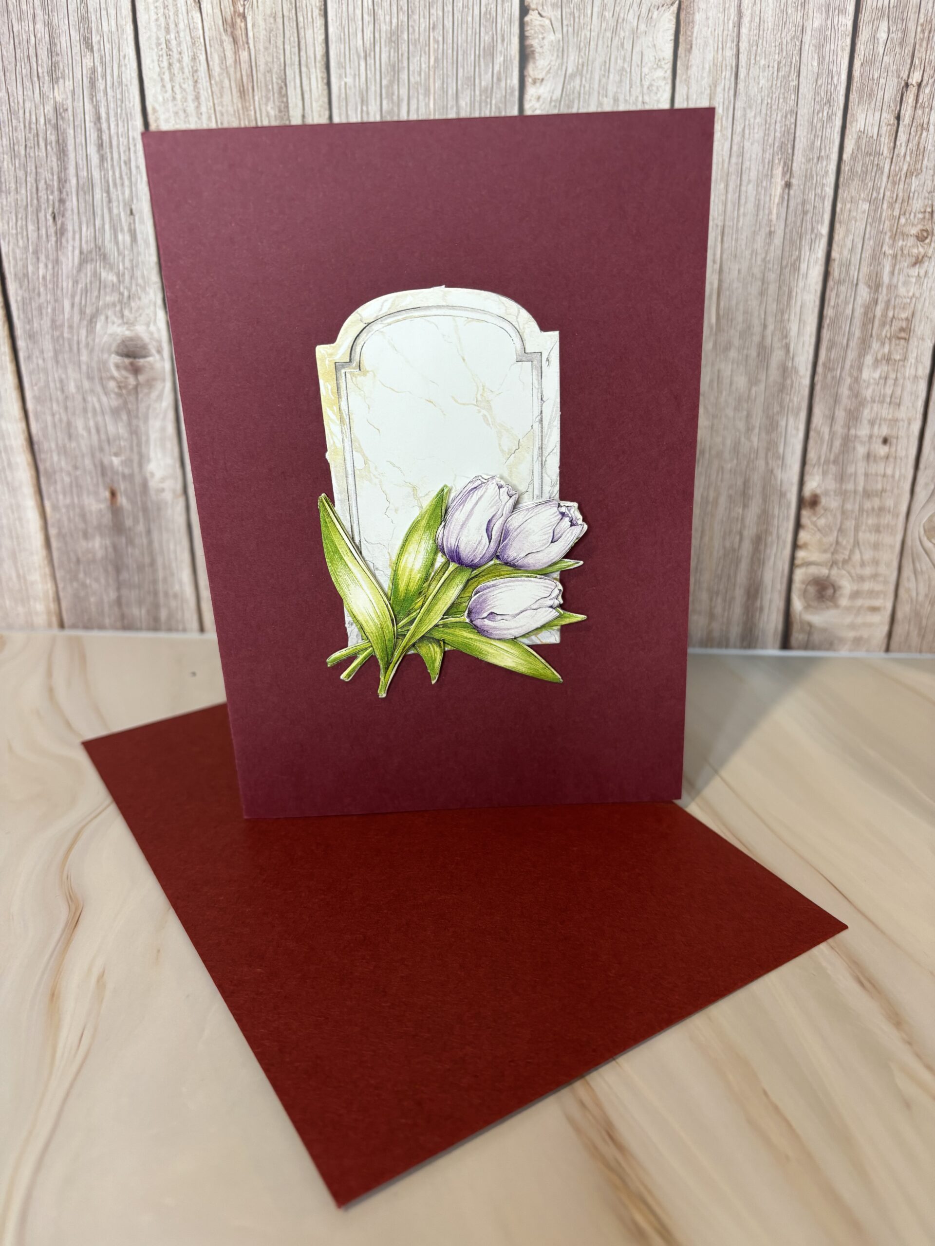 Dubbelgevouwen bordeaux kaart met bordeaux envelop.